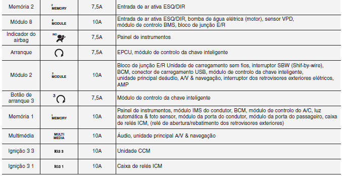 Informação Nem todas as descrições do painel de fusíveis referidas no presente manual se aplicam ao seu veículo; as informações estão exatas à data da publicação. Quando inspecionar a caixa de fusíveis do seu veículo, consulte a etiqueta da caixa de fusíveis